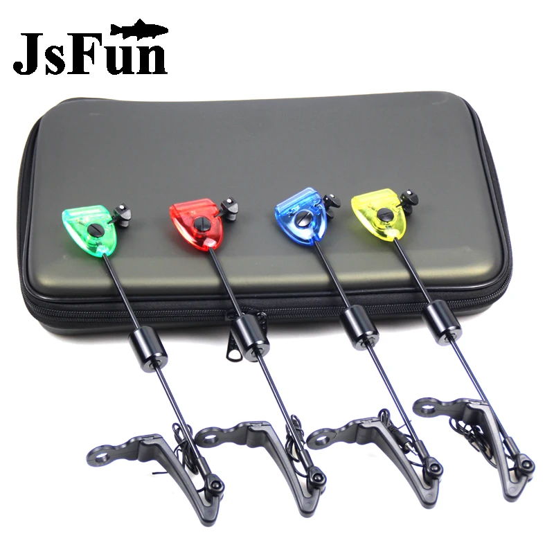 TOP Fishing Swingers Set Fishing Bite Alarm Indicators 4pcs In Zipped Case Led Illuminated Swinger Carp