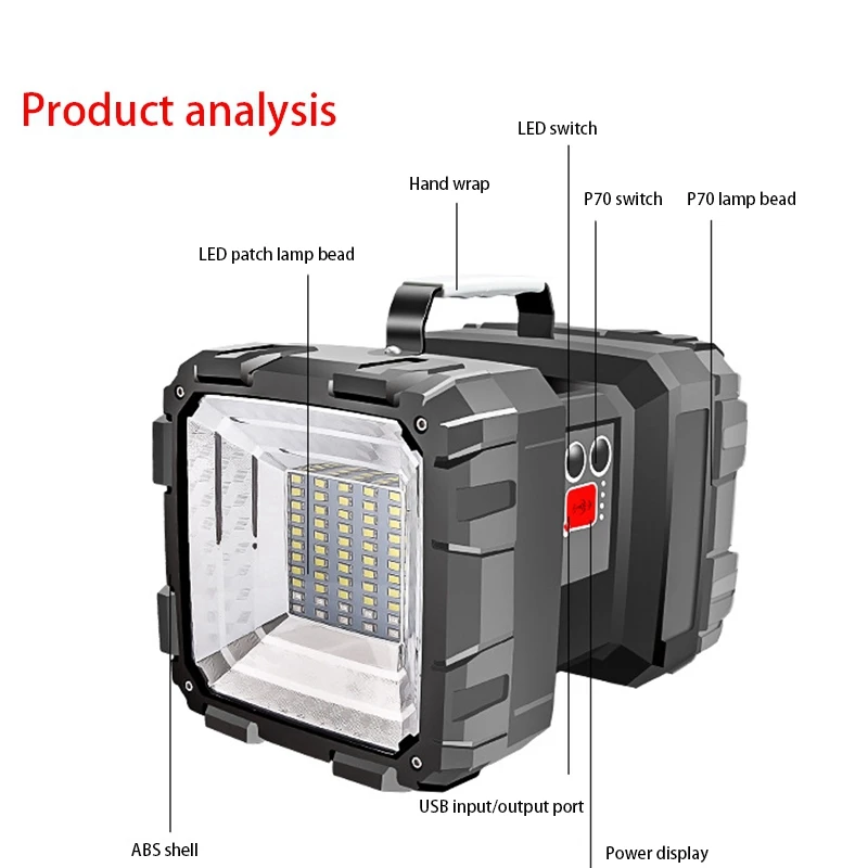 Outdoor Charging Portable Solar Work Light Wild Fishing Night Fishing Light Glare Searchlight 500 M