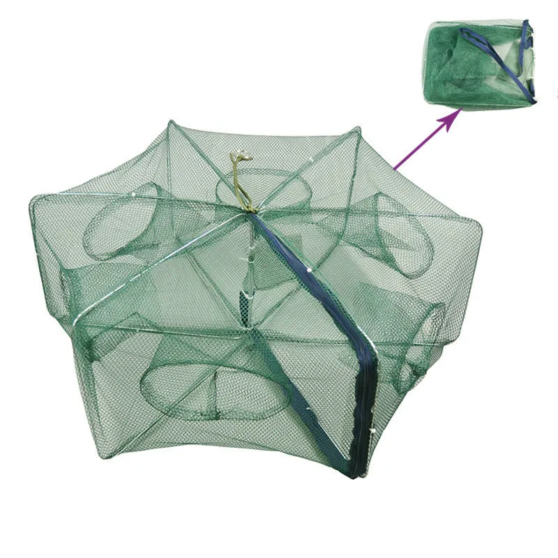 Hexagonal Folding Fishing Net 6/8/10/12/16 Fishing Trap Holes Cast Folding Strengthened Nylon Fishi